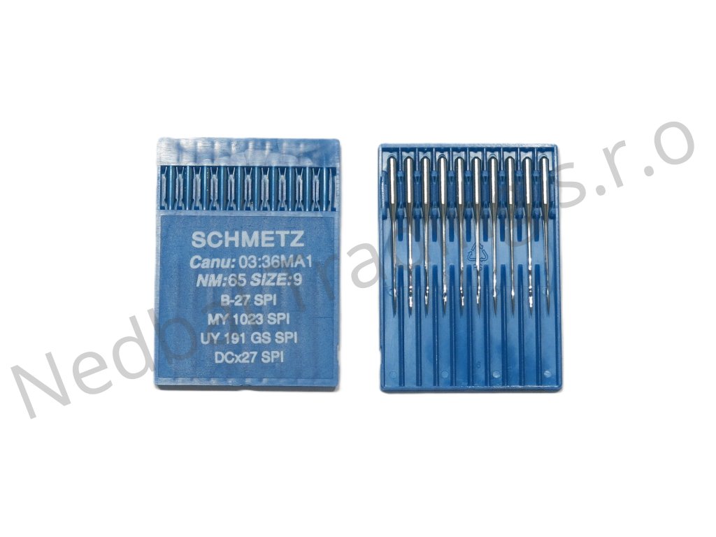 Jehla Schmetz, systém B27 síla 65/9 SPI - mírně kulatá špička je určená pro průmyslové overlocky Juki, Brother, Texi, Jack, Garudan, Singer, Yamato, Siruba, Textima.