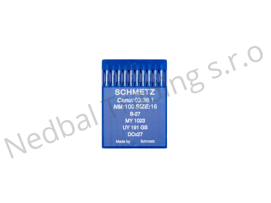 Jehla Schmetz, systém B27 síla 70/10 - ostrá špička je určená pro průmyslové overlocky Juki, Brother, Texi, Jack, Garudan, Singer, Yamato, Siruba, Textima.