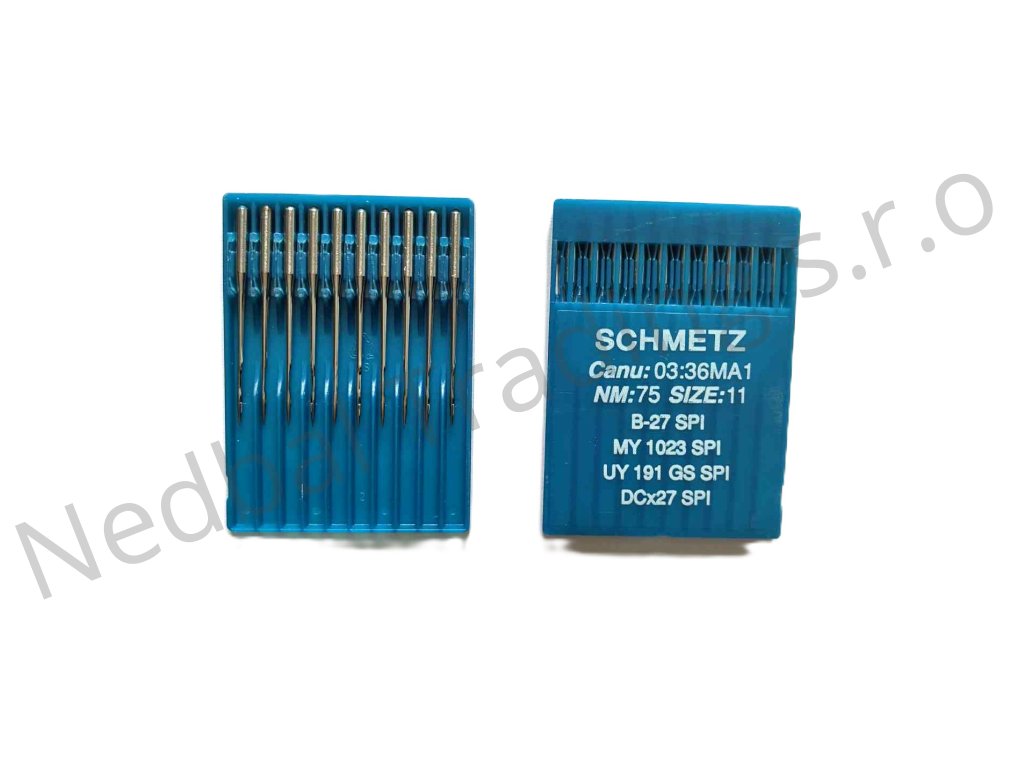 Jehla Schmetz, systém B27 síla 75/11SPI - mírně kulatá špička je určená pro průmyslové overlocky Juki, Brother, Texi, Jack, Garudan, Singer, Yamato, Siruba, Textima.