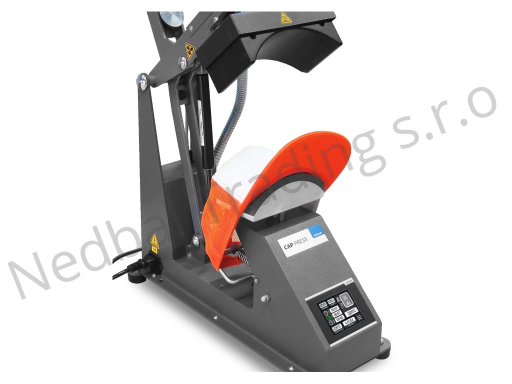 Cap Press je ideální základní model pro úpravu čepic. Jako obvykle nabízí automatické otevření lisu po dosažení nastaveného času přenosu.