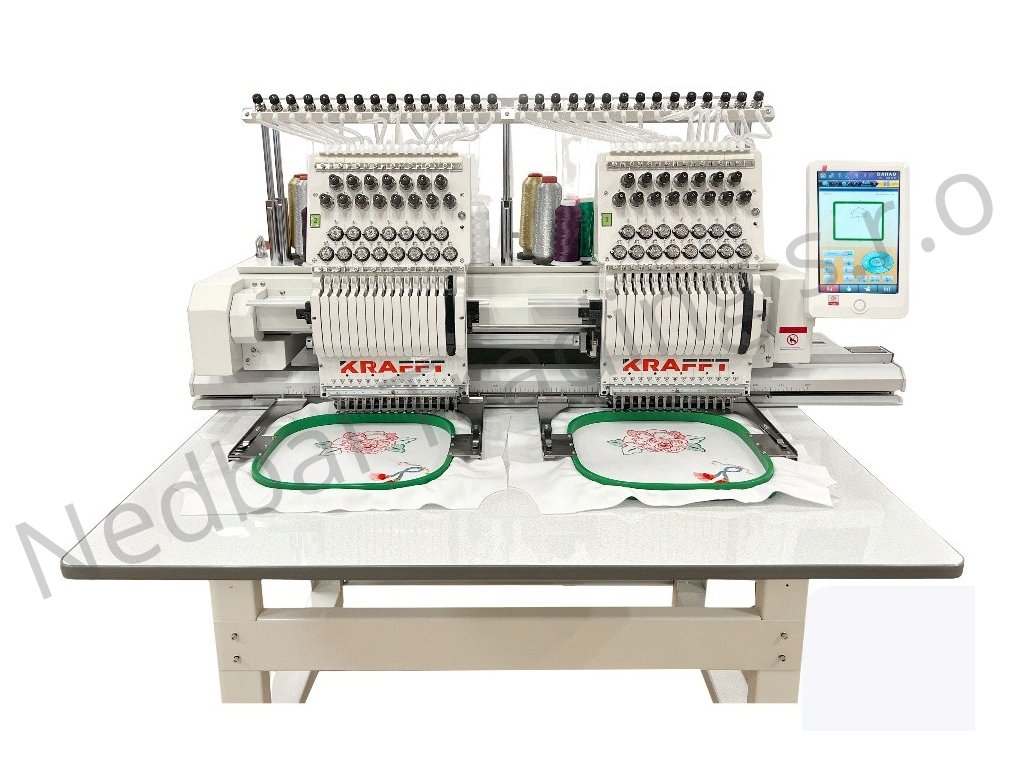 Krafft KF-CT1502H je profesionální, kompaktní, 2hlavý, 15barevný vyšívací stroj určený pro vyšívání na ploché a zaoblené předměty (čepice atd.), stejně jako na hotové výrobky. Maximální vyšívací pole pro ploché předměty je 50 x 40 cm. Je vybaven automatickým spuštěním a změnou barvy. Stroj také umožňuje 3D vyšívací efekty. Díky své vysoce kvalitní konstrukci a rozsáhlým vyšívacím možnostem je Krafft vhodný pro širokou škálu produktů. Je vybaven velkým, přehledným 10″ barevným dotykovým ovládacím panelem. Dodává se s komplexním standardním vybavením a má schopnost automaticky obnovit vyšívání po výpadku proudu. Umožňuje vyšívání pouze jednou hlavou.